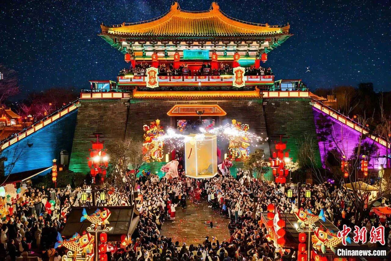 河南开封清明上河园夜间演出。 清明上河园供图