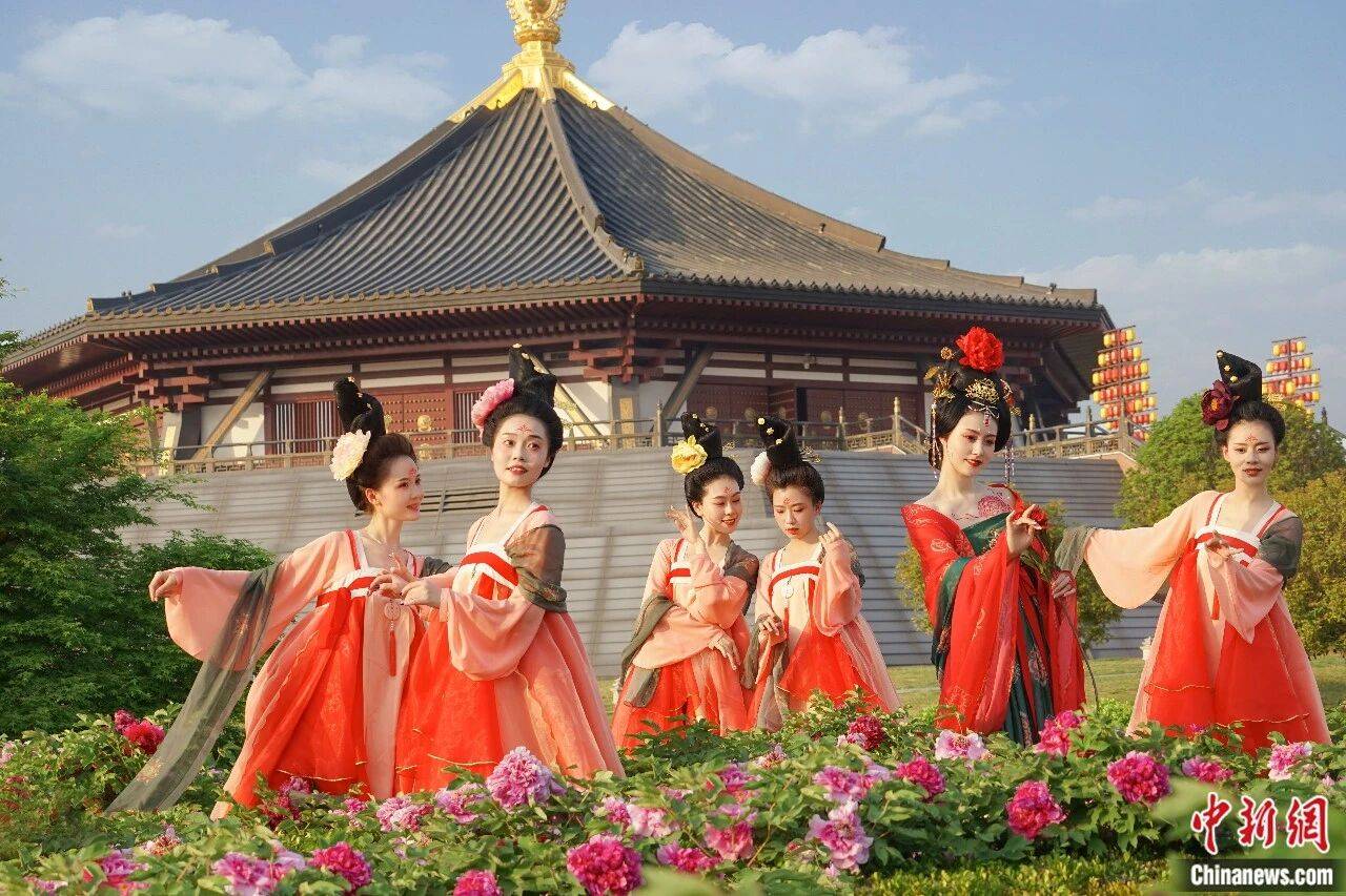 牡丹丛中的汉服秀。 牛林林 摄