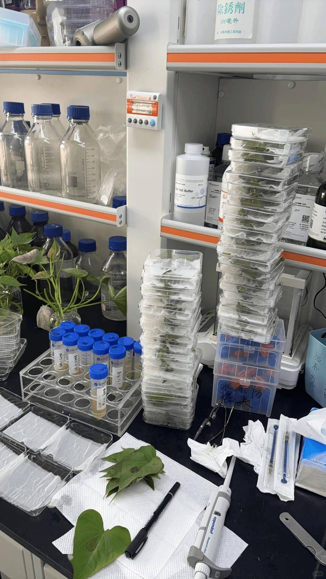 在实验室,研究怎么更好地种菜;