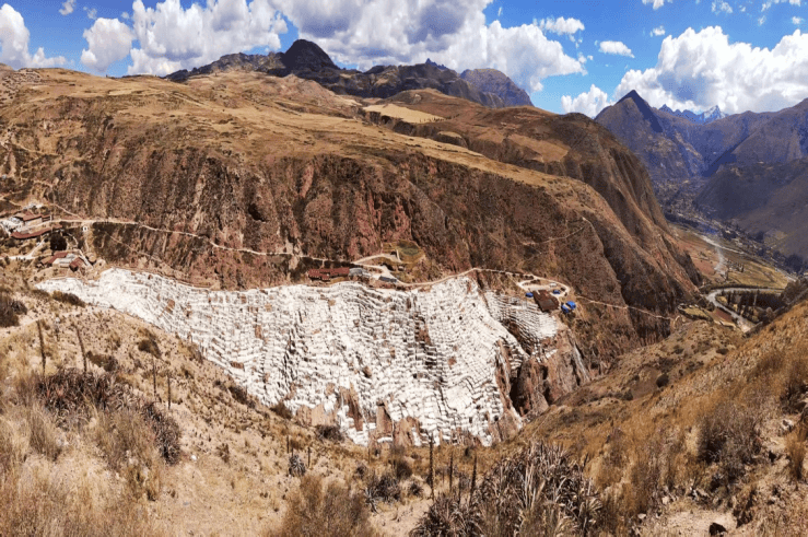 以梯田为标志的农林业无疑是印加帝国诸多辉煌成就中亮眼的一例,梯田充分利用了山地环境,也很美观,但其生产能力有限。现在无论是在萨克塞华曼(Sacsayhuaman)、圣谷还是马丘比丘,都能看到修缮完好、气势雄伟、排列整齐的梯田,确实彰显了印加人利用环境的高超技术和惊人创造,然而,正是这宏大的规模和当时并不先进的生产力之间的巨大反差使之成为难以解释的历史之谜。这一方面给印加历史平添更多的神秘色彩,另一方面也促使人们跳开梯田、从整体上重新认识印加历史。走出库斯科,进入齐秦罗丘陵地带和圣谷,茅塞顿开,豁然开朗。正是印加人在此开阔地带大面积种植不同品种的玉米和土豆,为首都库斯科的建设和繁荣提供了坚实的物质基础。坐落在这一地域的育种基地(Moray)利用不同高度梯田上的气温微小差异培育了适应不同海拔山地的作物品种,这是印加人利用环境变化改造物种的一个成功范例。坐落在这一地域的盐田(Maras)把地下的咸水引入山谷,利用地形和气温晒出各种不同品质的盐,供帝国人畜享用。不远处的雪山在阳光照耀下熠熠生辉,正是雪山融水滋润着这片丘陵地带,使之能在海拔3000多米的高度上成为丰产之地。显然,是庞大的腹地支撑着帝国首都,是腹地的巨大生产力在某种程度上维持着帝国的扩张和运转。建在海拔2300多米悬崖峭壁上的马丘比丘是世界自然和文化双遗产,它由设计神奇的城市和大面积的梯田两部分组成,周围环绕着乌鲁班巴河和高耸的群山。这个令人震撼的人造物已被列入“新世界七大奇迹”。且不管它的功能是什么,就是在这个最不适合建设城市的地形上修建如此规模的城市已经让人难以置信,甚至思绪会自然顺着栓日石指示的方向以及冬至日神奇出现在太阳神庙窗口的那束光飞扬,飞向虚无缥缈。不过,“逸兴壮思”终究要收回,回到四通八达的印加古道走一遭,就会发现是脚下的古道把谷地、丘陵和高山平原与这座天空之城有机联系在一起,是垂直农业体系筑起了印加人的这座丰碑。
