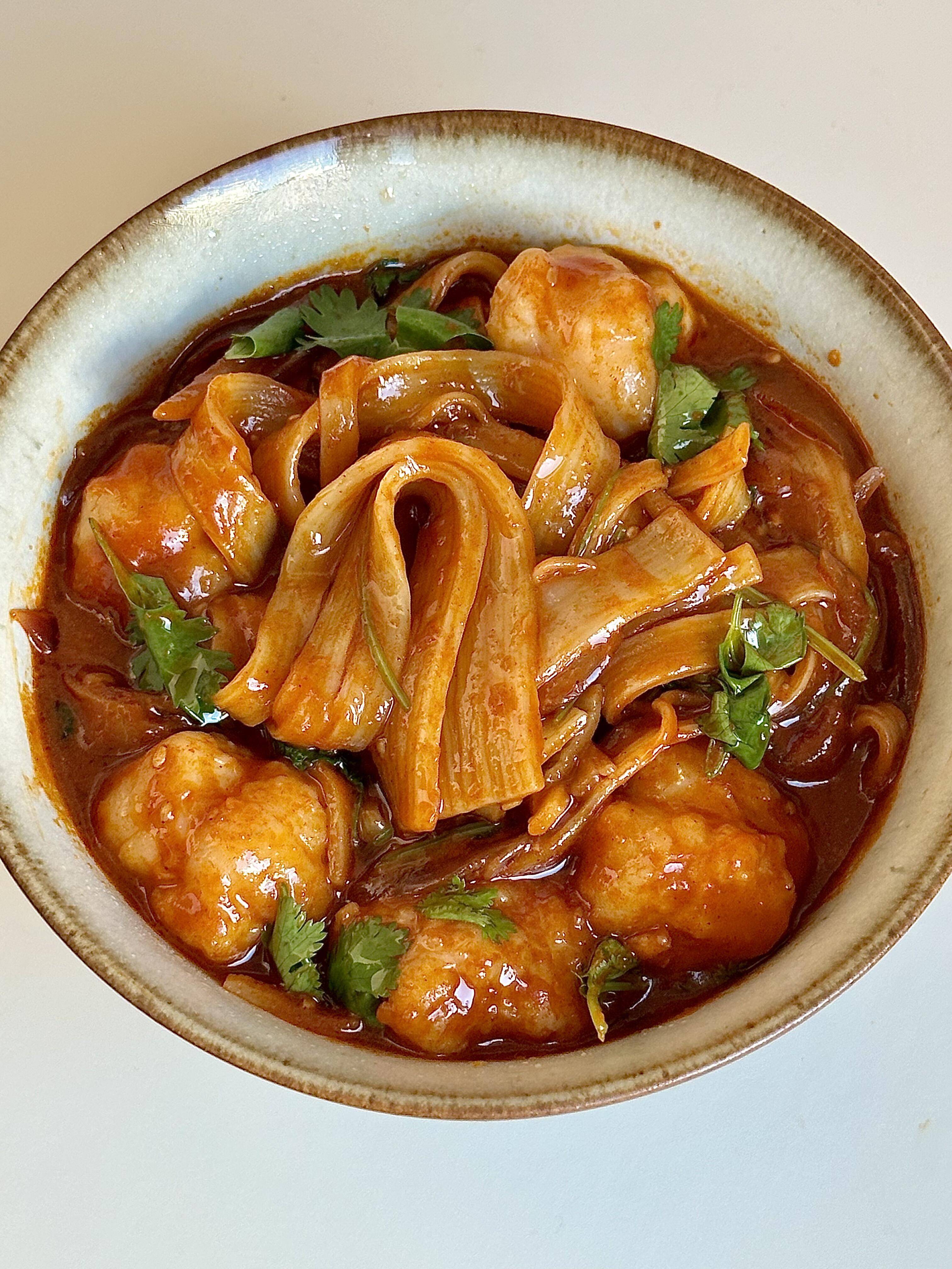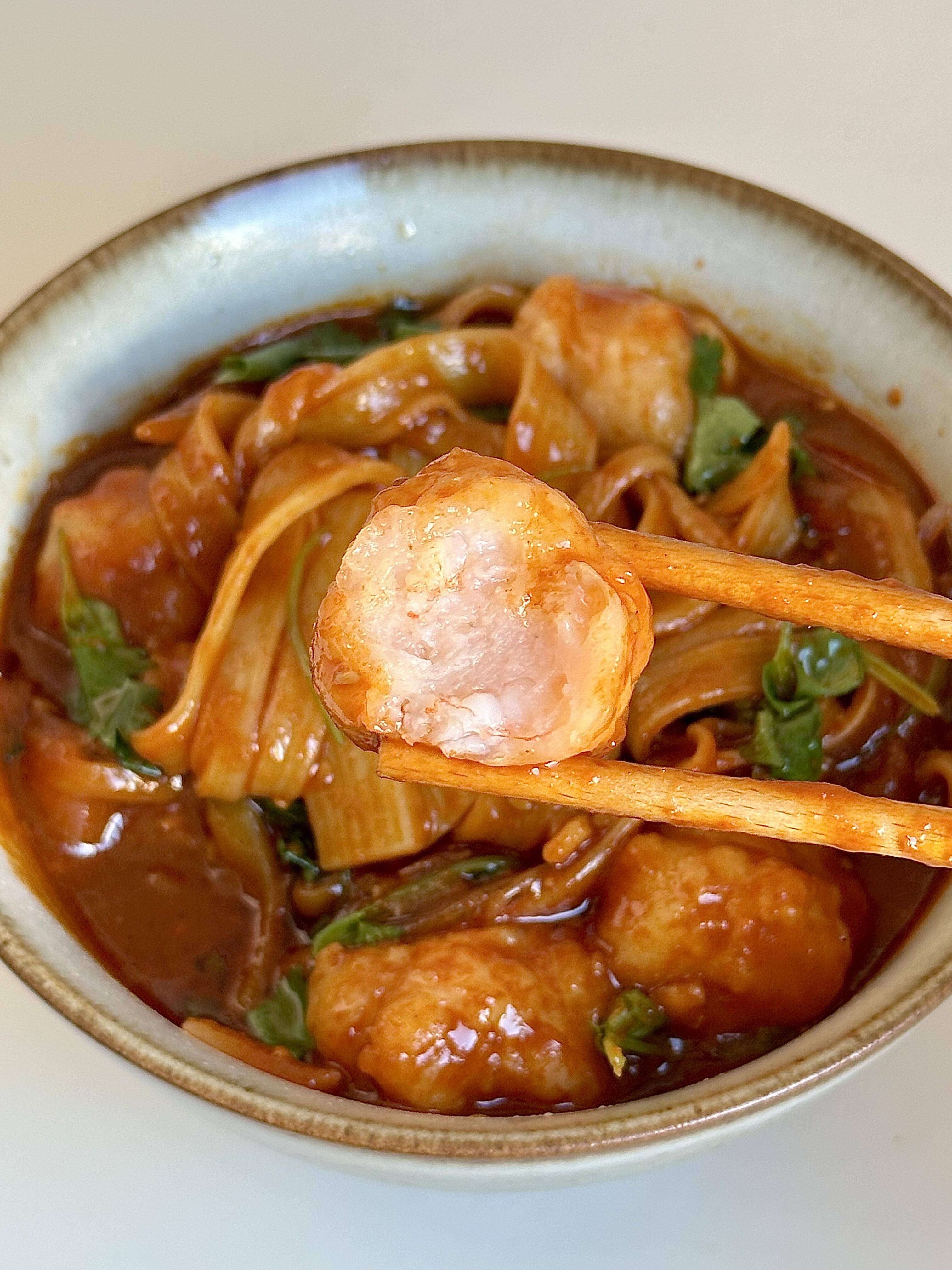 这道小吃最动人之处,在于它将街头美味搬回家。虾滑提供优质蛋白,冷面补充碳水,是一道解馋又管饱的创意美食。