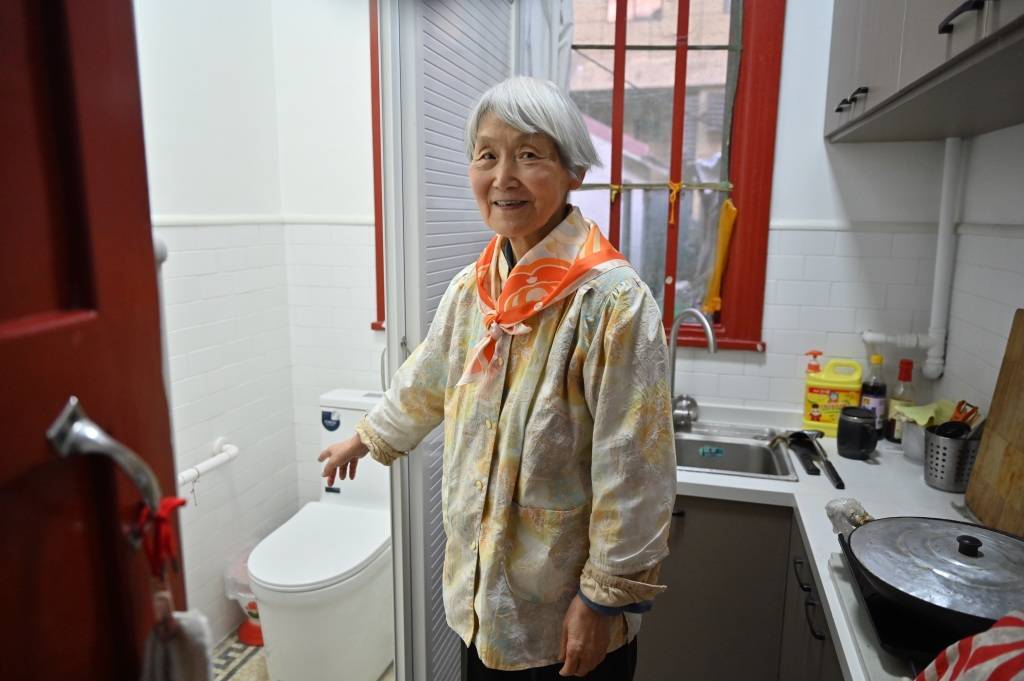 “以前下雨天撑把伞背痰盂出去,天黑也只能自己解决。翻修了之后用起来很方便,晚上起夜再也不用往公共厕所跑了。”