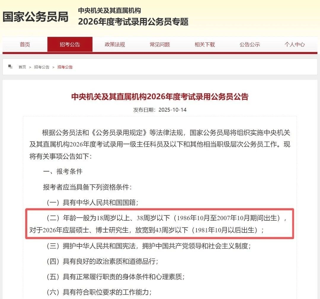 2026年国家公务员考试季的到来,迎来了一个历史性的变化——部分地区报考年龄限制放宽至38周岁或43周岁。