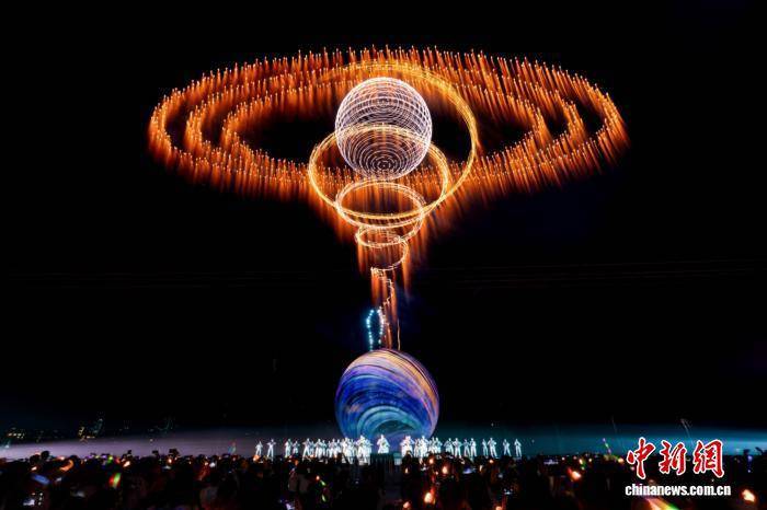 浏阳烟花上演“地球之心”夜空奇观。徐移波 摄