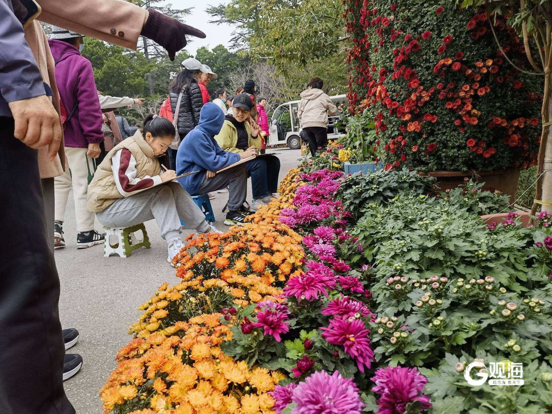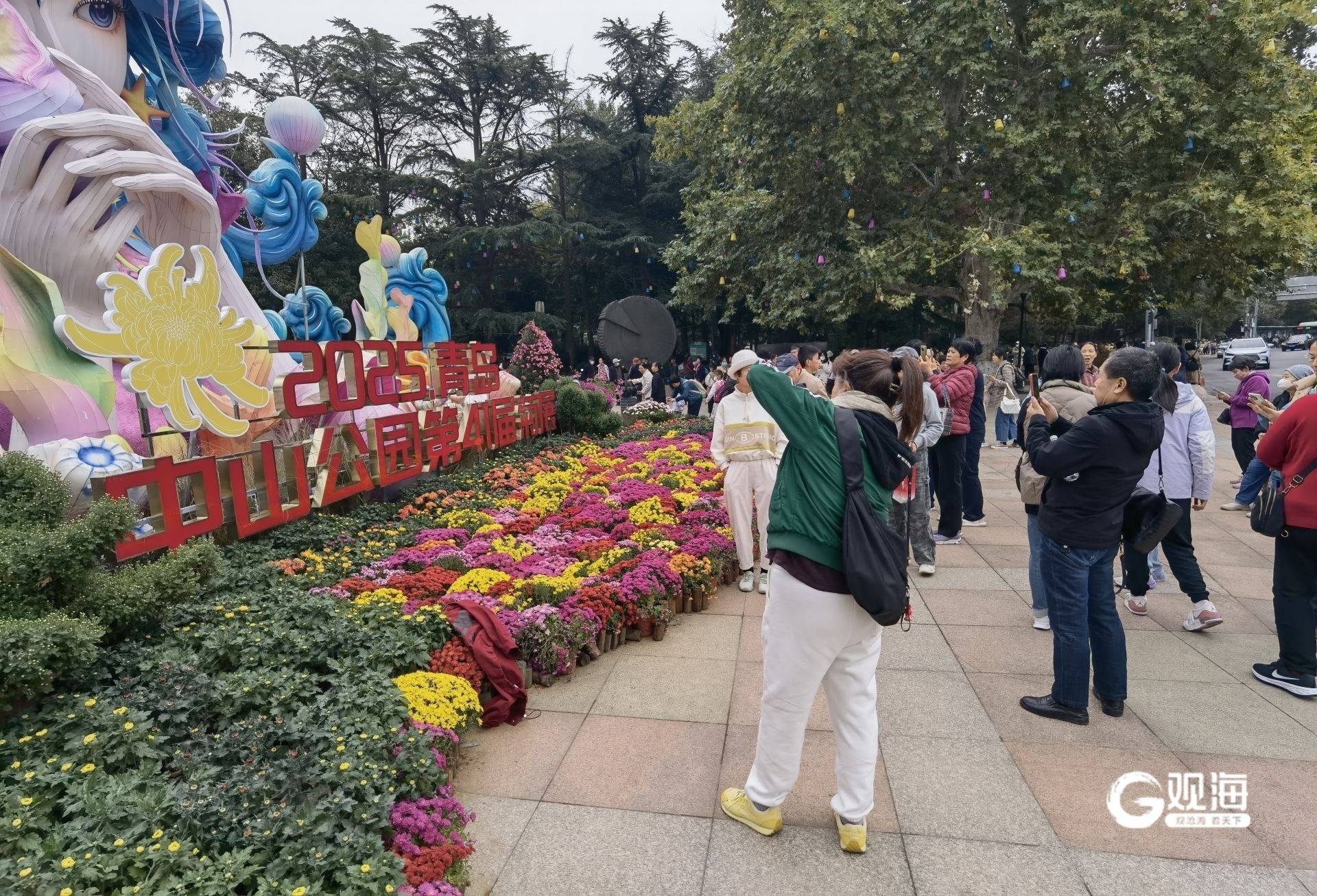 不少市民专程前来,身着秋装,在花丛中摆出各种姿势拍照,记录下与秋日美景的邂逅。摄影爱好者也纷纷架起“长枪短炮”,捕捉菊花的千姿百态。(青岛日报/观海新闻记者 王雷文/图)
