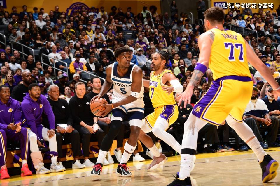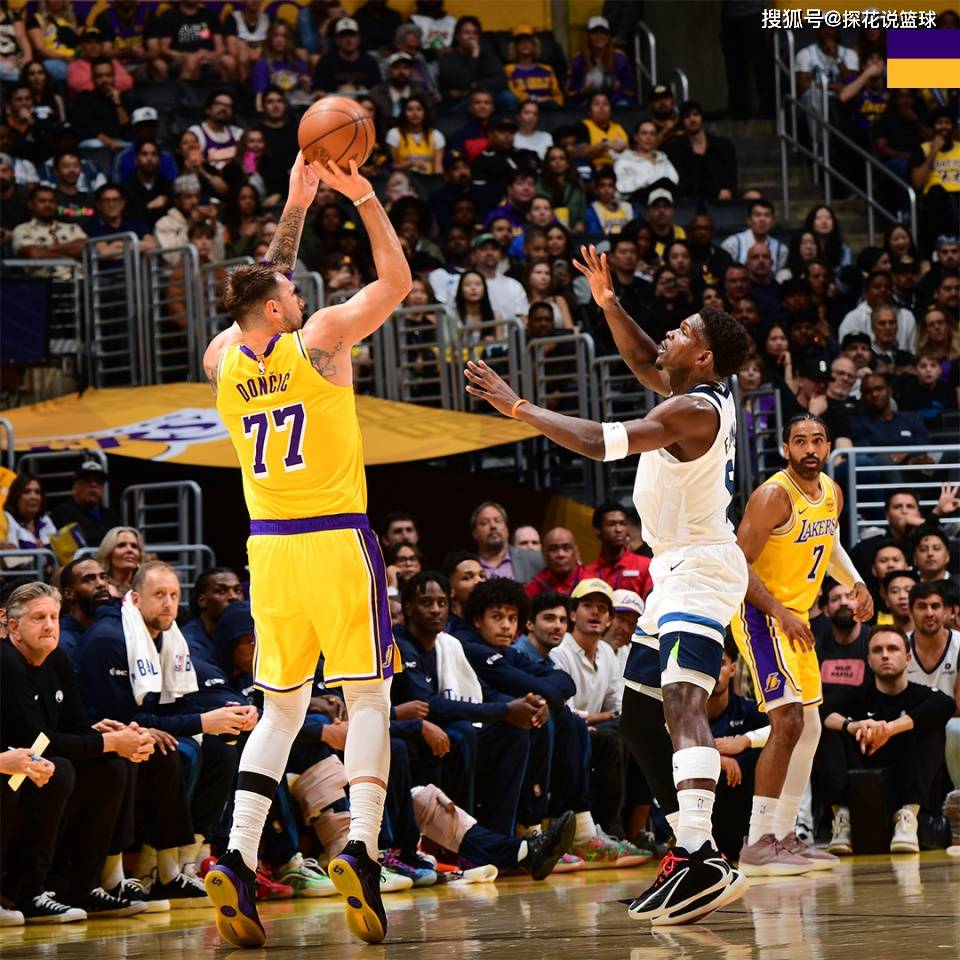 本场比赛湖人首发还是东契奇、文森特、里夫斯、八村和艾顿,上来森林狼率先进入状态,内线连续拿分取得6-0领先。东契奇罚球破荒,森林狼这边外线接连命中,依然占据场上主动,爱德华兹跳投命中,随后三分也进,取得26-15领先。里夫斯突破打进止血,拉拉维亚三分命中,东契奇三分也进,湖人成功追上比分,森林狼这边进攻依然出色,还是保持领先,东契奇三分再进,爱德华兹回敬,首节打完森林狼40-36领先。