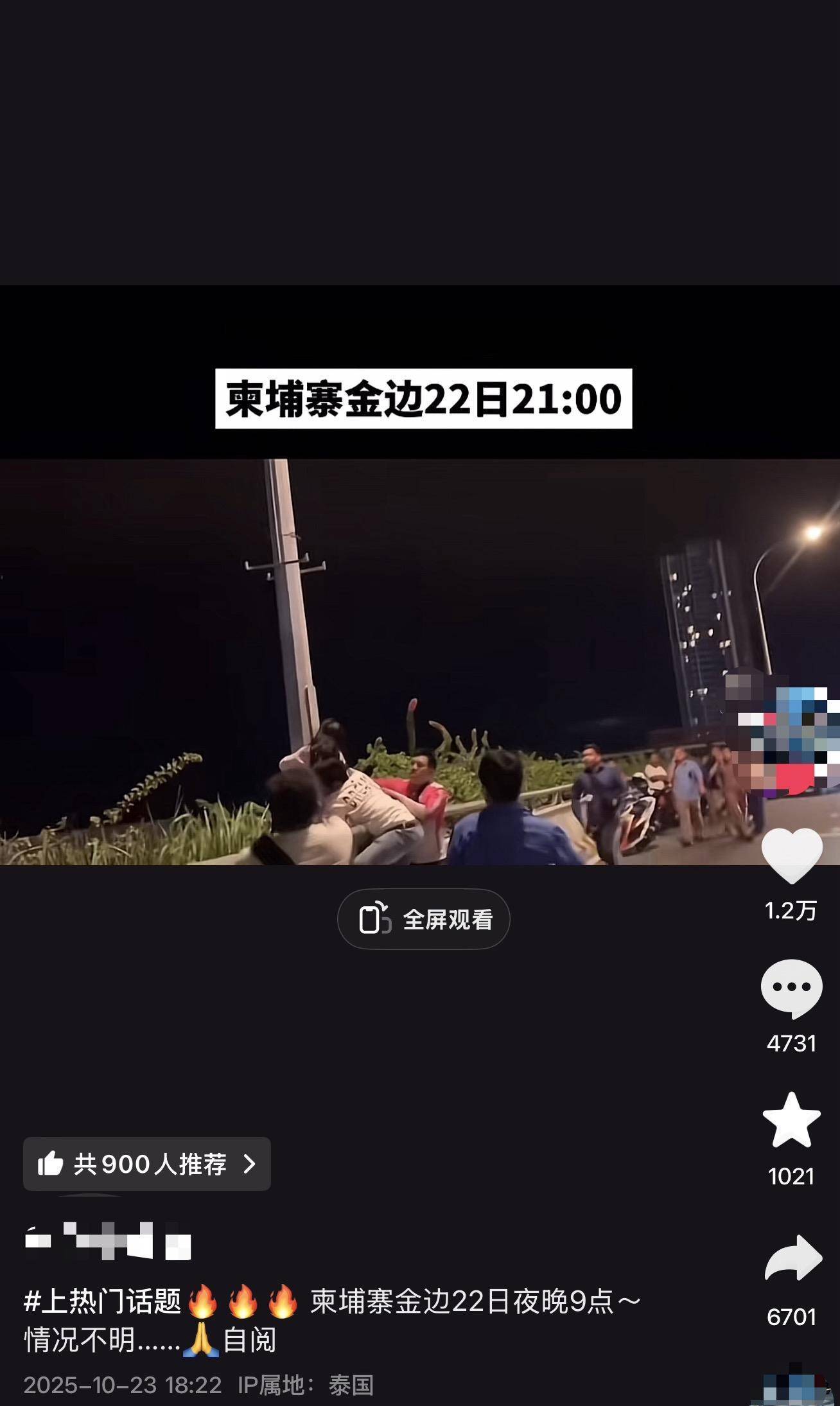 10月25日晚,中国驻柬埔寨大使馆发文称,近日,有关社交媒体上出现一名中国女子在柬埔寨金边爬上大桥栏杆、后被警察和路人拽下的视频。中国驻柬使馆对此高度重视,当即与柬警方联系,了解核实相关情况。