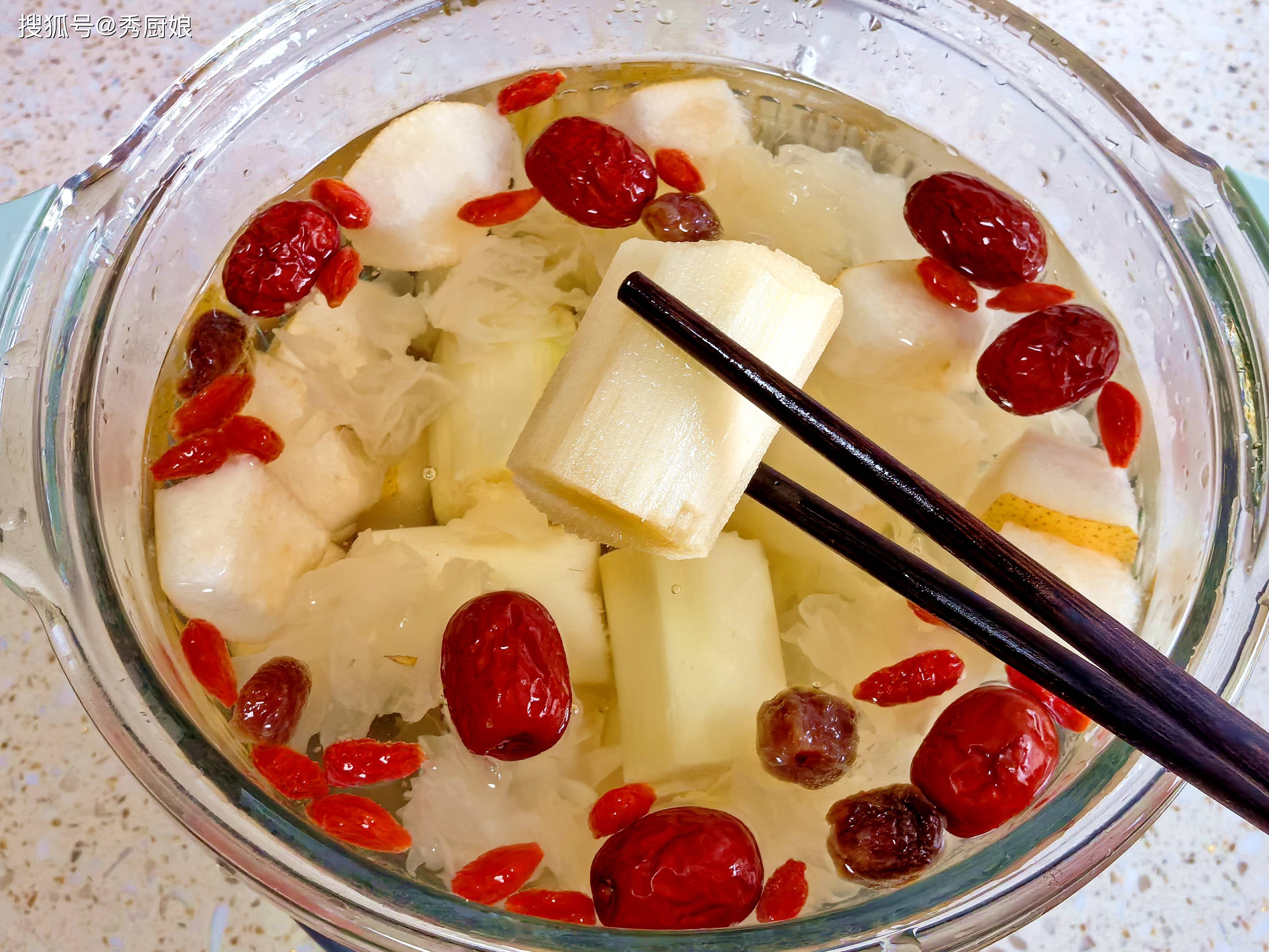 知道了谁不适合多吃,接下来就给大家分享一道特别适合冬季的甘蔗食疗方——甘蔗雪梨银耳羹。这道甜羹既保留了甘蔗的甜美,又通过搭配多种食材,让它变得更加温和滋润,老少皆宜。