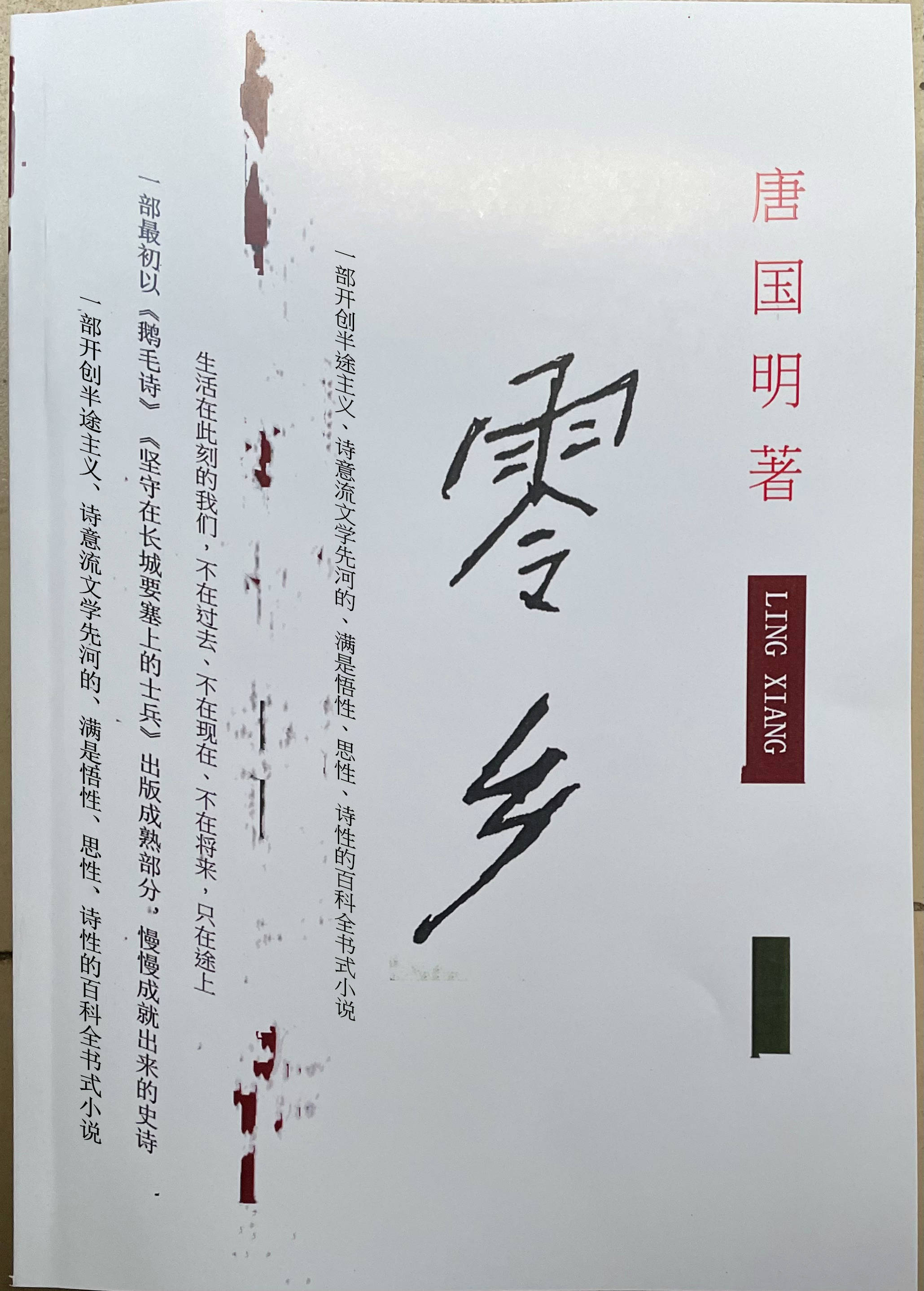 一个忠于自己的皇帝的士兵,一个不失鹅毛风范骨、长风情怀心,开创鹅毛诗、诗意流、半途主义,找到《红楼梦》八十回后曹雪芹文笔,写有《零乡》、忠于自己理想的作家唐国明,与一些神神色色的人,以长城要塞为中心,共同交集出了一部从古至今,跨越几千年的话剧一样的、百科全书式的史诗。整部作品以鹅毛满天的方式,以诗意流的形式,讲述了永处半途之上、永处无归零乡状态的“我们”,为了一个归,一个此刻又一个此刻艰难奋进到今的历程。
