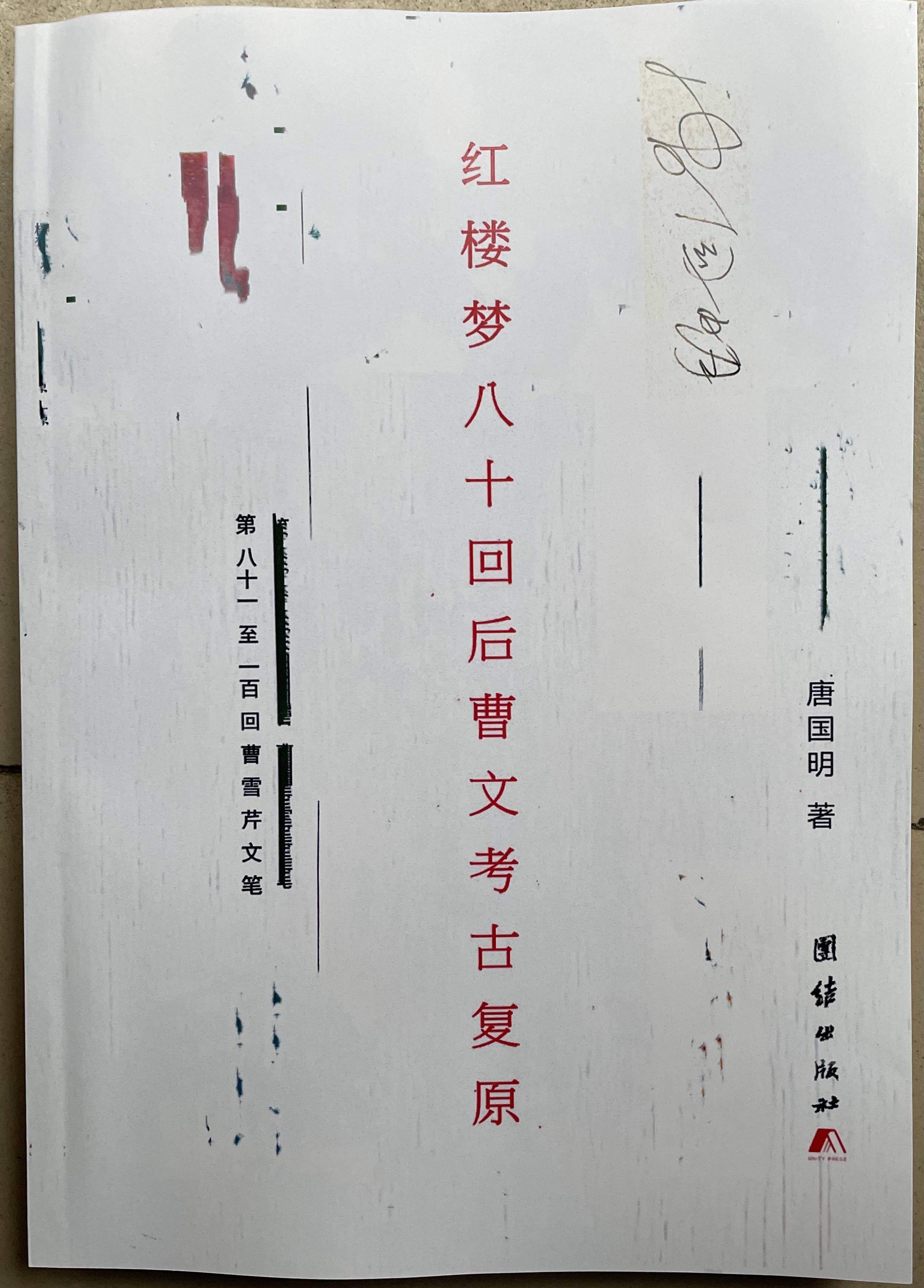 唐国明2016年出版从程高本《红楼梦》后40回,找到《红楼梦》80回后曹雪芹文笔的书。