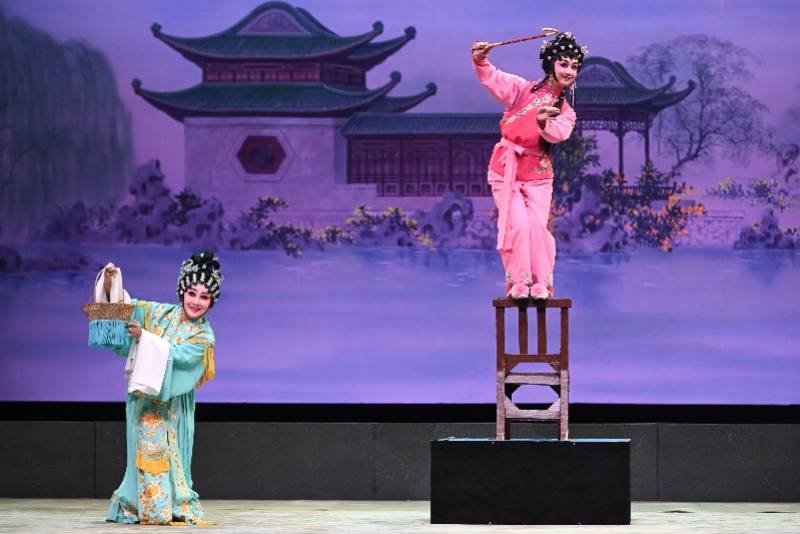 香港演员千珊表示:“这次我为大家带来的是具有香港特色的女小生表演。能与三地的年轻演员共同交流,我感到非常高兴,不仅学到了很多,也对粤剧在不同地区的表现形式异同有了更深的了解。”