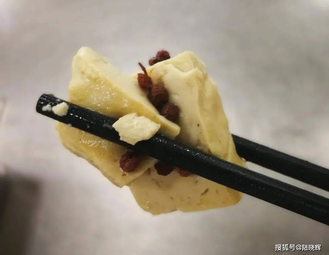 确实,这豆腐看着朴素,吃起来却有讲究 —— 刚入口是淡淡的咸,嚼两下就有黄豆的清甜冒出来,花椒的麻味不冲,只在舌尖轻轻绕一圈,最后咽下去时,卤汁的香味还黏在唇齿间。