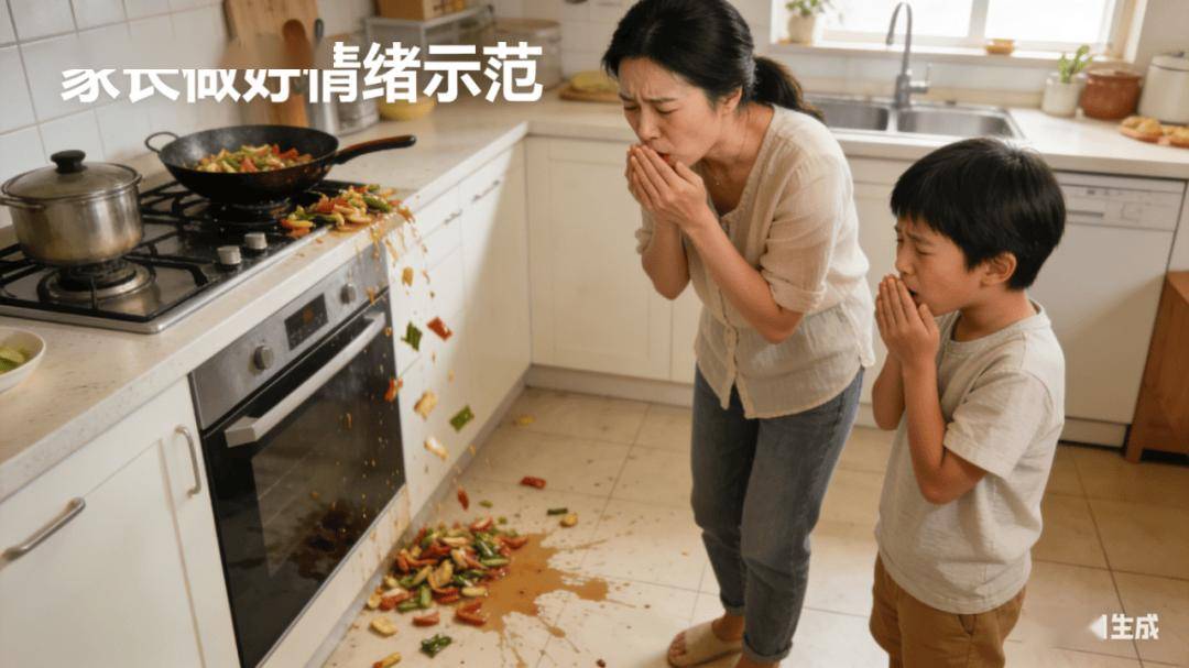 有位妈妈分享过一个故事:有次她做饭时,不小心把刚炒好的菜打翻了。换作以前,她肯定会烦躁地抱怨。但那天她深吸一口气,对旁边的孩子说:“哎呀,妈妈刚才不小心把菜打翻了,现在有点懊恼。不过没关系,我们先把这里收拾干净,再重新做一份。”