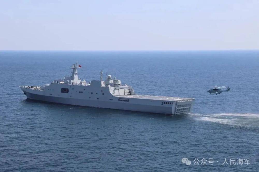 近日,东部战区海军某登陆舰支队龙虎山舰解缆起航,奔赴某海域开展多科目实战化综合演练。