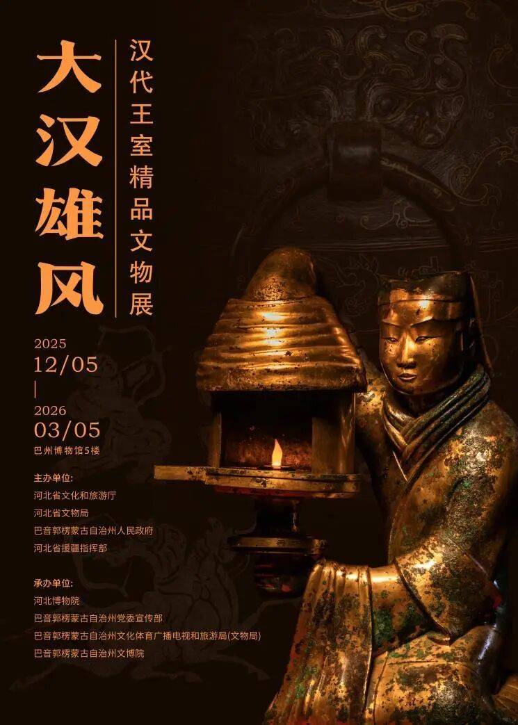 为进一步铸牢中华民族共同体意识,深化援疆工作成果,由河北省文化和旅游厅、河北省文物局与巴音郭楞蒙古自治州人民政府、河北省援疆指挥部主办,河北博物院、巴音郭楞蒙古自治州党委宣传部、巴州文化体育广播电视和旅游局(文物局)、巴音郭楞蒙古自治州文博院承办的“大汉雄风——汉代王室精品文物展”,于12月5日在巴州文博院开幕,展期3个月。本次展览,是冀疆情谊的生动见证,也是河北与巴州两地携手践行习近平文化思想,深化“文化润疆”工程的切实之举。