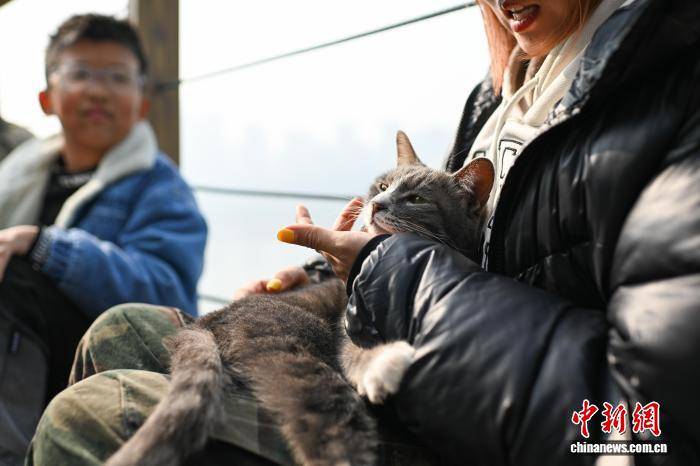 1月13日,游客在重庆萤火虫港湾猫猫主题乐园与猫咪互动。中新社记者 何蓬磊 摄