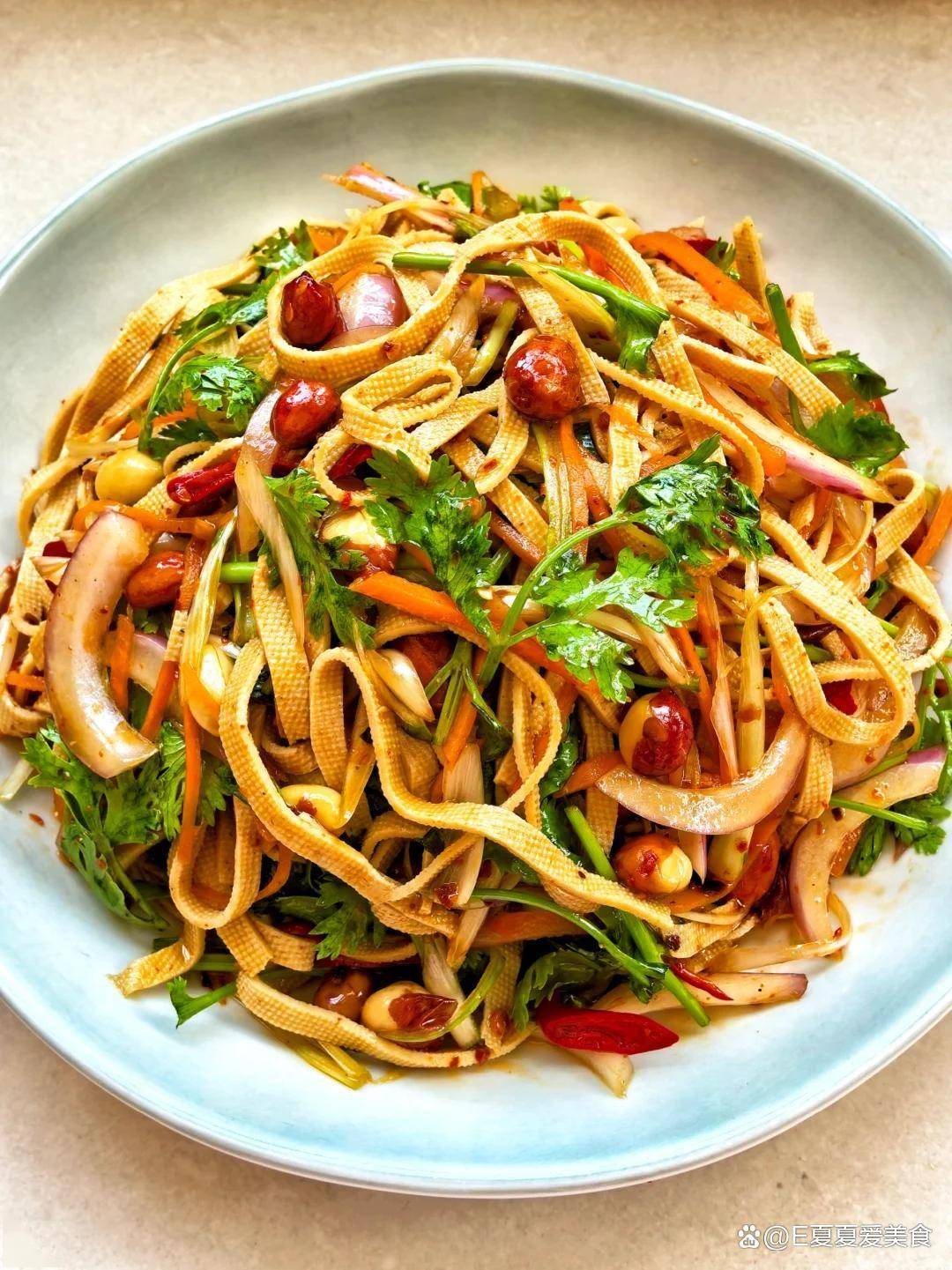 用筷子粗暴搅拌就像在洗衣服,豆腐丝全被绞成碎末。正确手法是"翻拌",像炒菜那样从底部轻柔往上翻。
