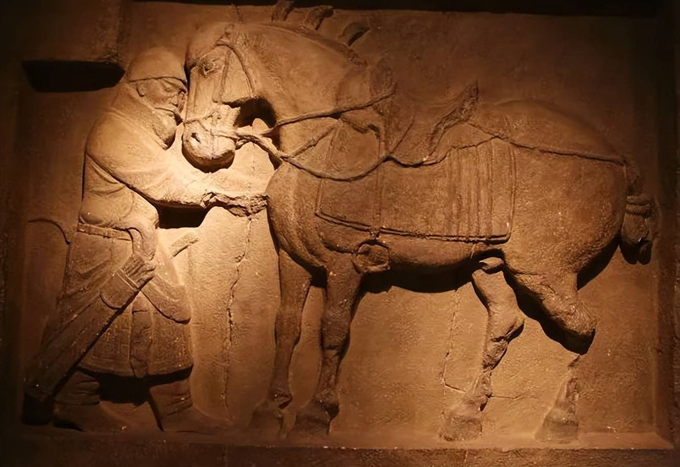 有一匹叫飒露紫的马,浮雕上刻着一个人在给它拔箭。