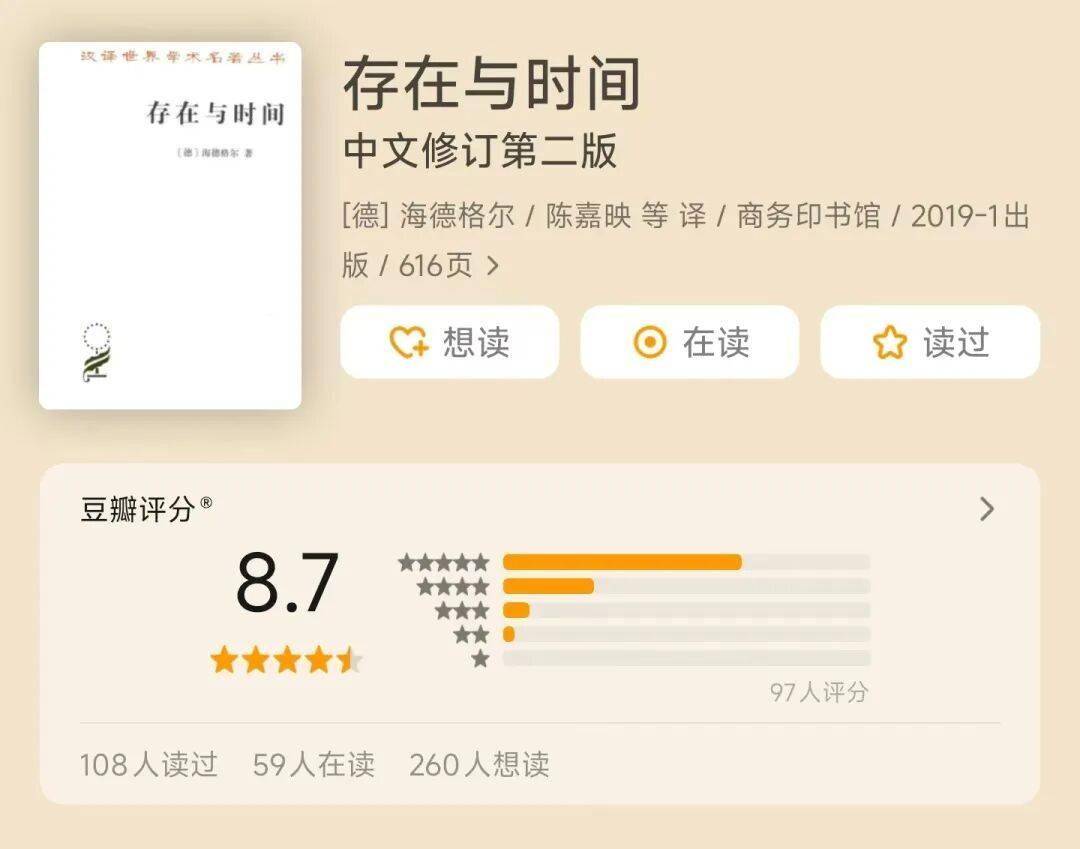 文明批评家海德格尔的惊世之作,确实可以配得上“一炮而红”这样的形容词。无论如何,前后花在这本书上一个多月,值得了。