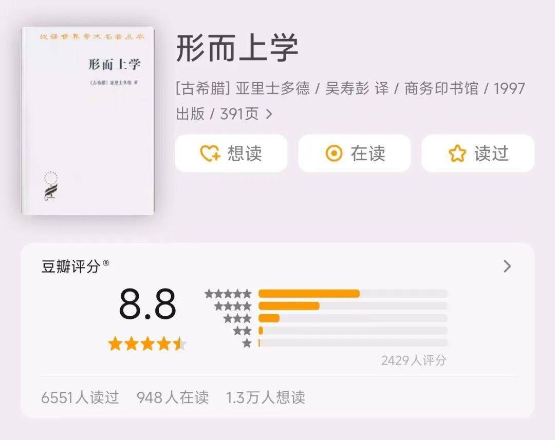 亚里士多德的名著,这样的书籍不读,我们是无法理解西方的哲学, 也无法理解西方任何学科的建构的。