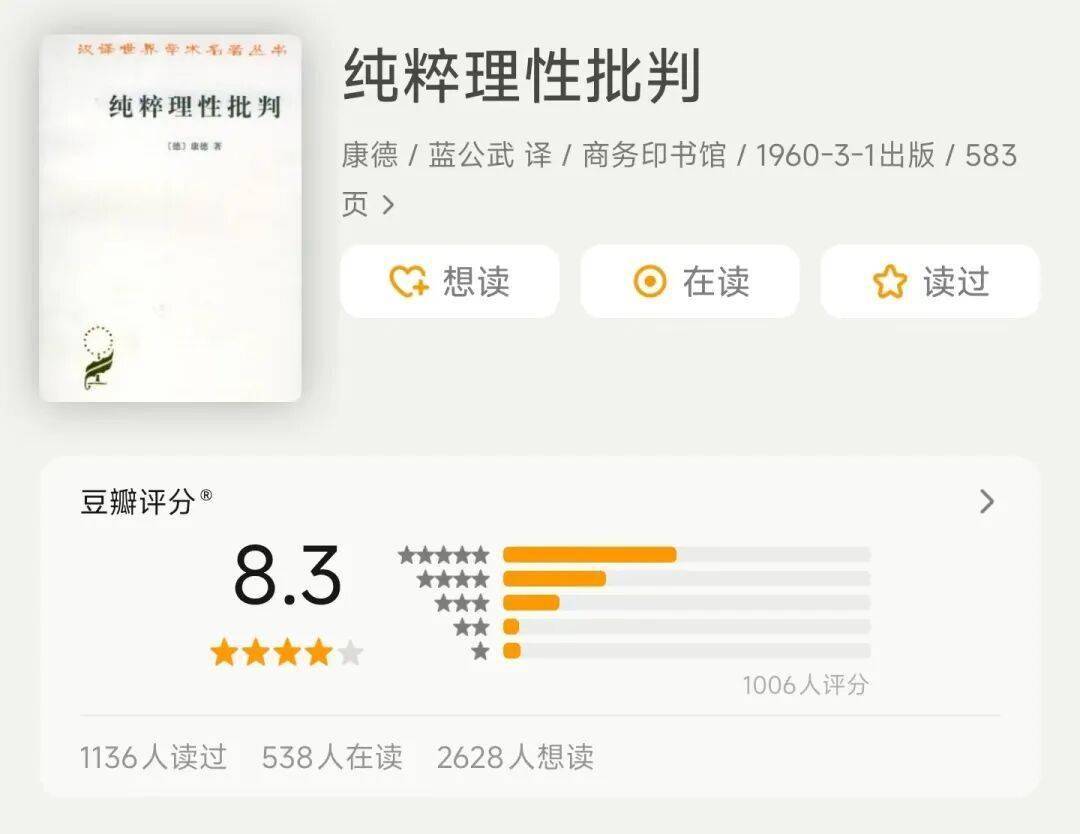 读康德对于我来说也是人生思想历程的一个重大时间点。