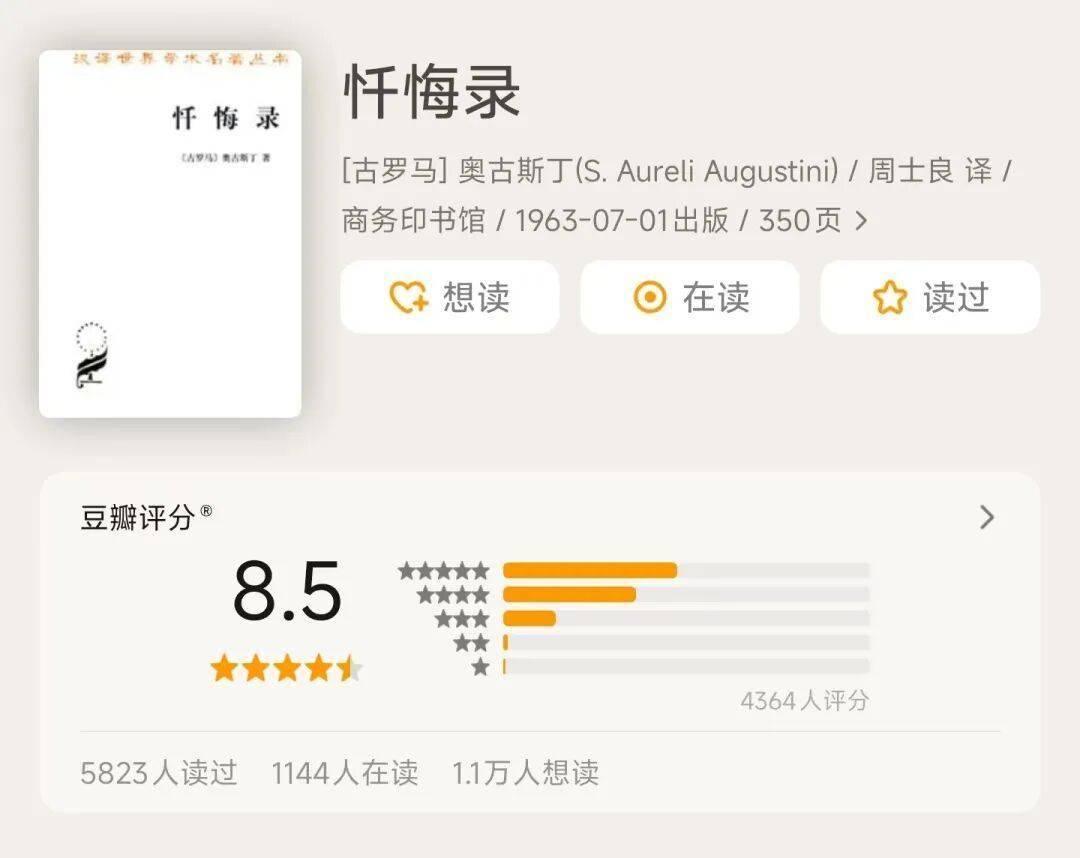 可以说是西方历史上第一本忏悔录,奥古斯丁在寻求一个绝对的他者,可以说是必读的一本书。
