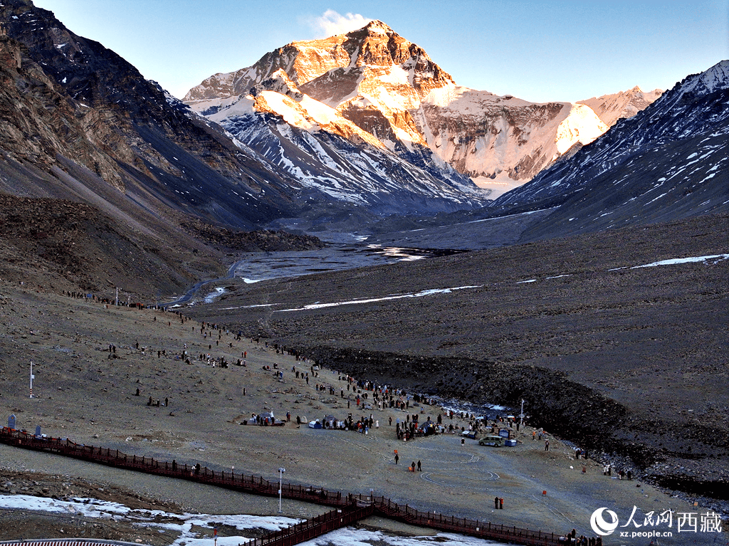 近年来,西藏日喀则珠峰景区持续加强硬件设施建设,优化旅游配套服务,着力提升游客的安全感、舒适度和满意度。随着旅游环境不断完善,前往珠峰观光体验正受到越来越多游客的青睐。 日照金山峰耸云。人民网记者 吴雨仁摄