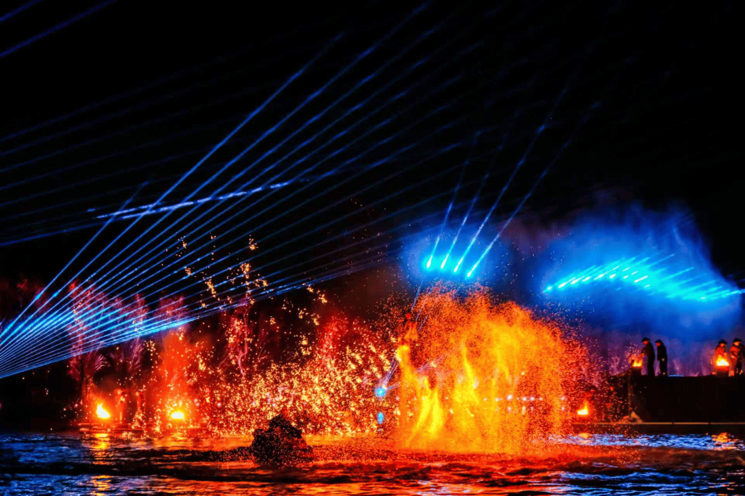 两千余米的光影长廊上,30余组大型主题灯组将龙都文化与马年吉庆完美融合,夜色里流光溢彩。白日里,实景马战《濮阳之战》再现金戈铁马的豪情,欢乐大马戏的欢笑声此起彼伏;夜幕降临,千年非遗打铁花腾空绽放宛如星河,与水上飞人特技相映,呈现“水火交融”的震撼奇观。