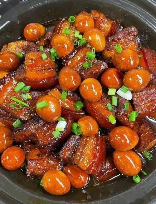 食材:五花肉、鹌鹑蛋、葱、姜、蒜、八角、桂皮、香叶、料酒、生抽、老抽、冰糖、盐。