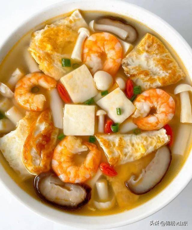 6、加入1勺盐、少许白胡椒粉调味,撒上葱花即可出锅。一碗鲜香营养的菌菇虾仁鸡蛋汤就完成了。