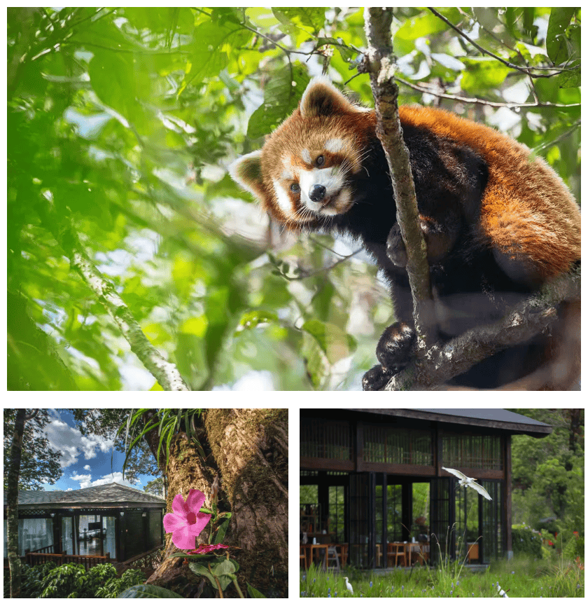 憨态可掬的小熊猫,时不时从枝头探出半个毛茸茸的身子,好奇地打量着你。如果你运气够好,还能看到它笨拙地爬过开满花的树枝,惹得花瓣簌簌落下。