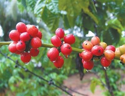 海南罗布斯塔咖啡果实。 资料图片