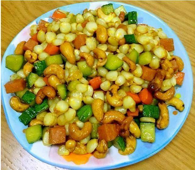 食材:玉米(糯玉米)、黄瓜、胡萝卜、腰果