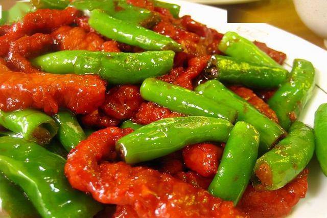 3.平底锅烧热后放多一点的花生油,下腌制好的肉丝快速炒熟后盛出备用;
