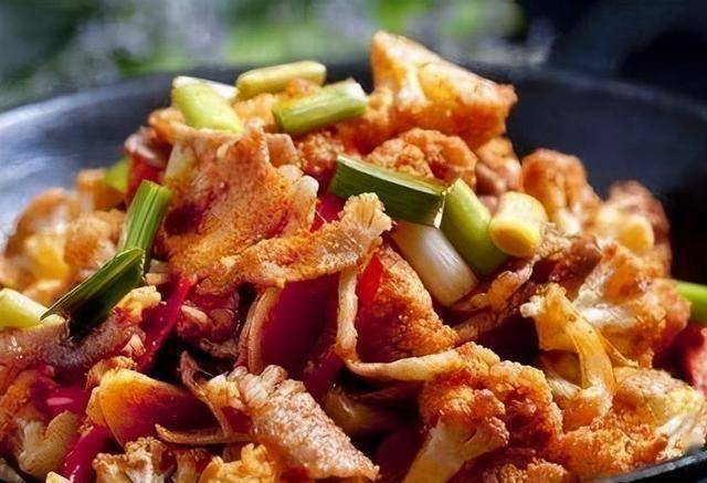 用料:菜花500克、五花肉100克、红尖椒2个、食盐1.5茶匙、酱油2汤匙、姜4片、蒜2瓣
