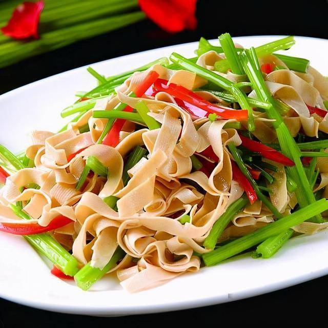 食材:瘦猪肉、腐竹、蒜苗、红辣椒碎、生抽、油、盐、五香粉、料酒、淀粉、胡椒粉、鸡精