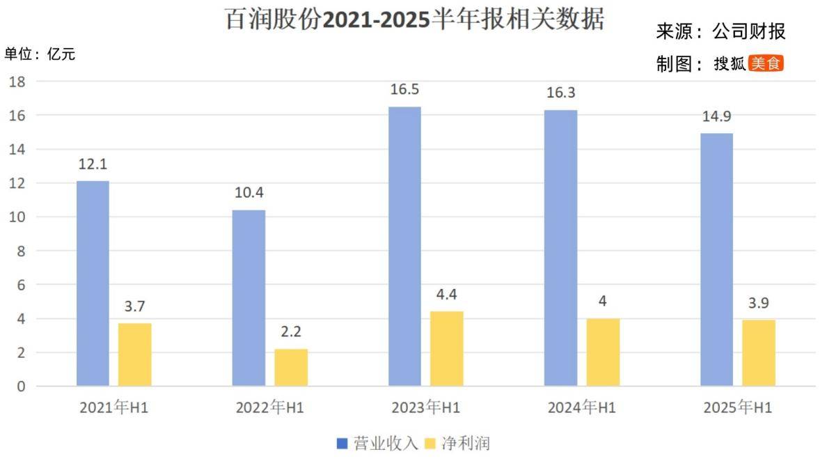 股权变动背后,是百润股份核心业务的持续萎缩。2025年8月,百润股份半年报披露:上半年百润股份营收14.89亿元,同比下滑8.56%,销量较2024年同期减少218万箱。
