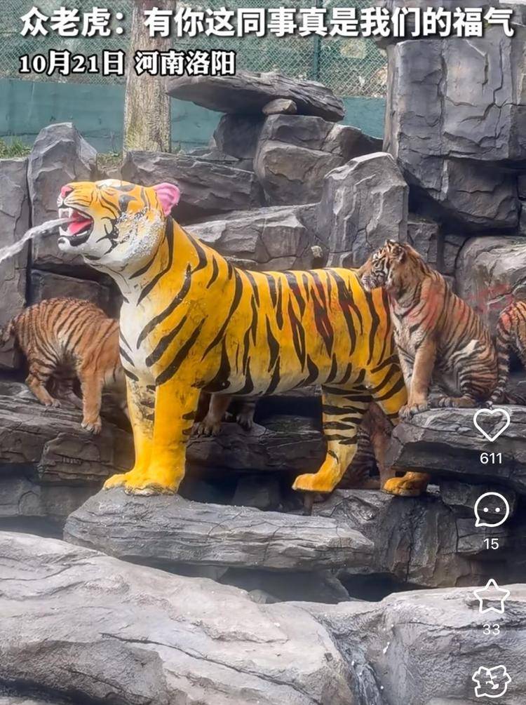 近日,河南洛阳一家动物园因游客拍摄的“虎口瀑布”视频在网络走红。视频中,一只活老虎一动不动地衔着水管,水流从管中持续喷出,形似老虎造型的喷泉。走红后,园方解释称,视频中的老虎为亚成年虎,咬水管是它们的自然探索行为,“把水管当成磨牙玩具”。